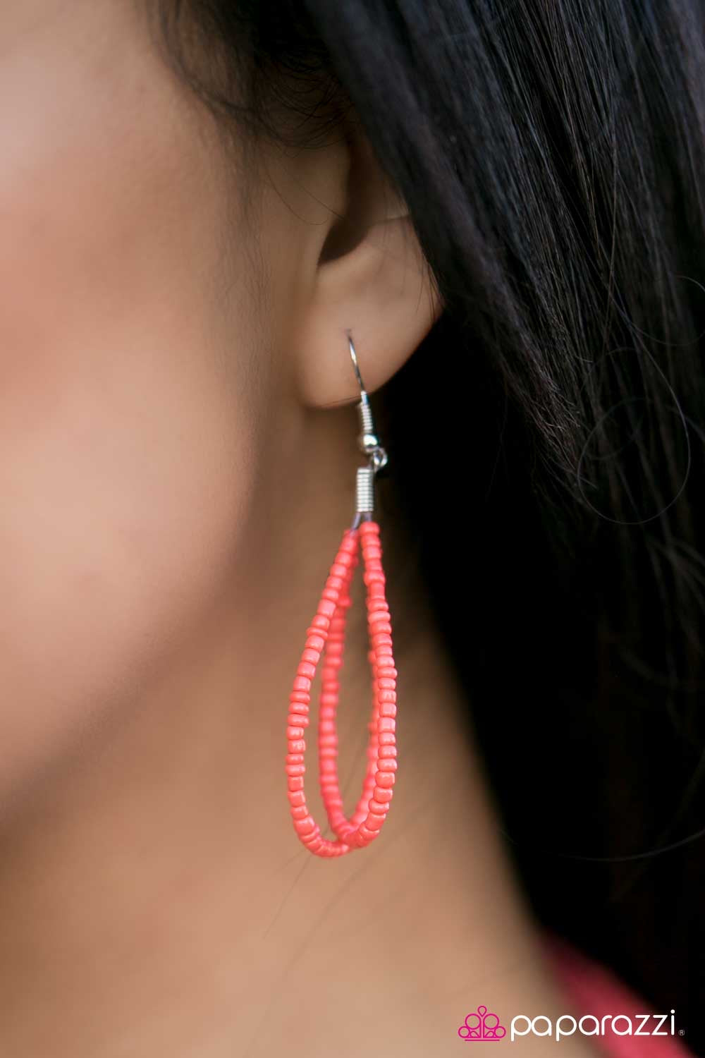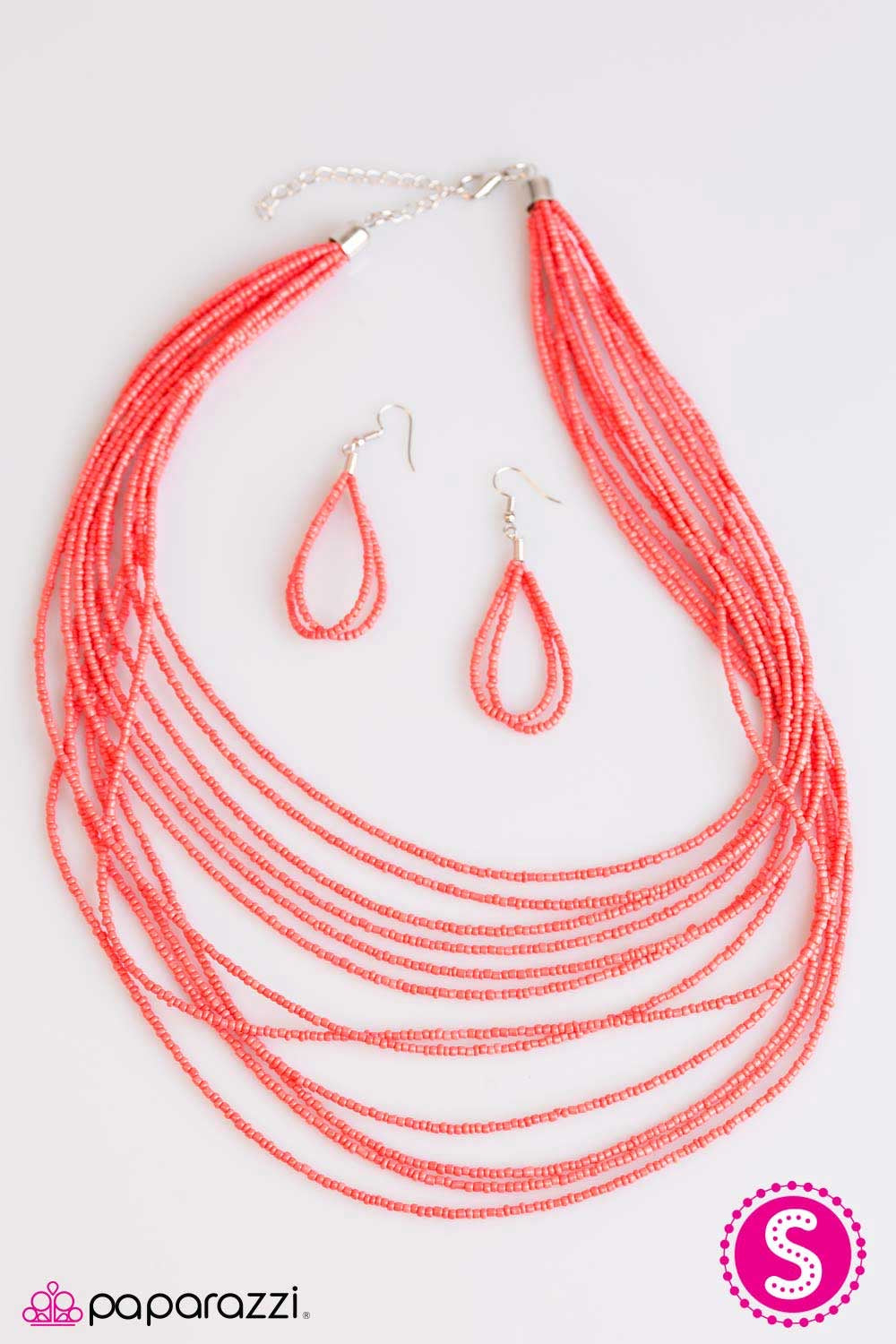 Countless strands of coral seed beads drape dramatically between two silver accents, creating colorful layers across the chest for a simply seasonal fashion. Features an adjustable clasp closure.