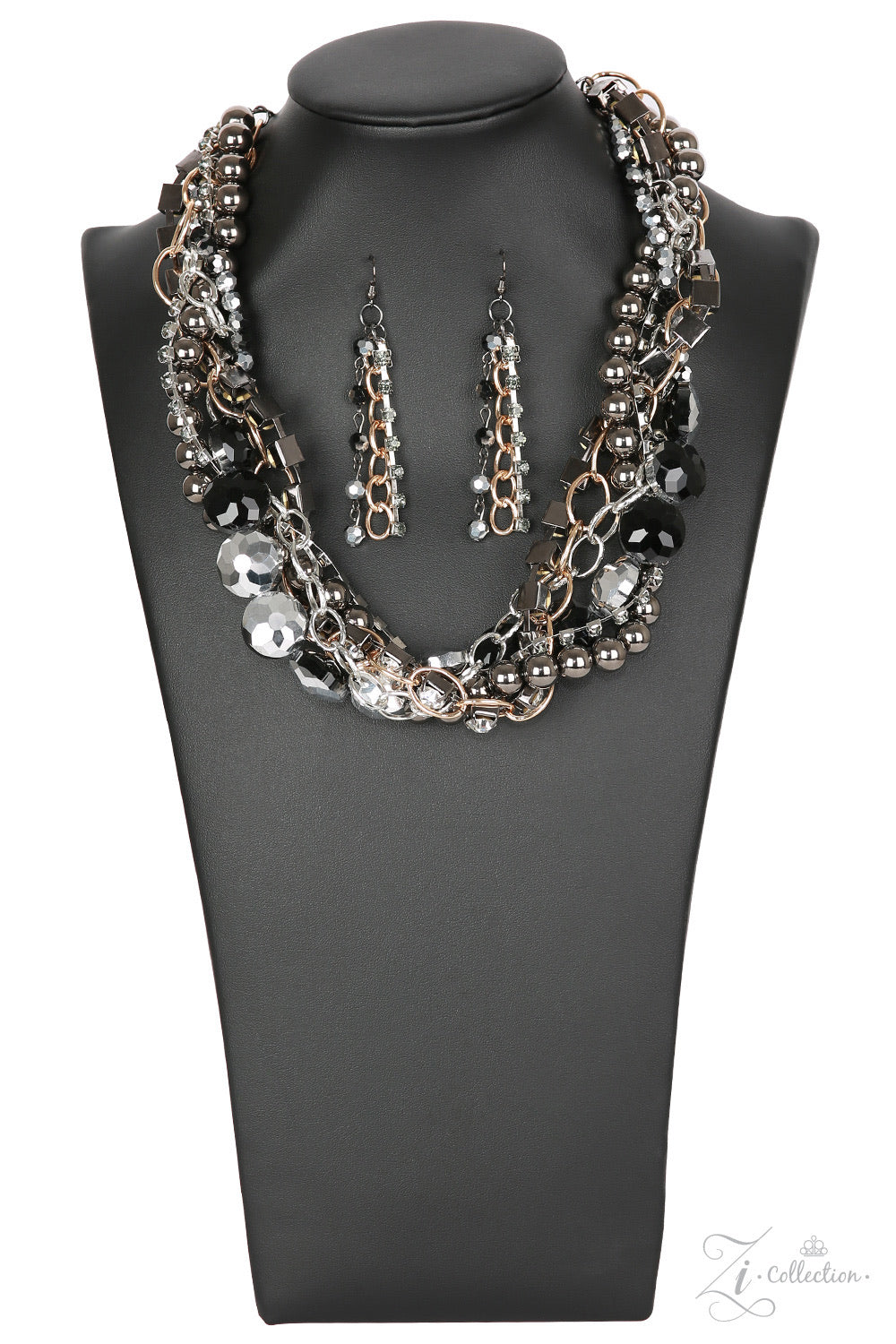 Strands of faceted black gems, classic white rhinestones, shimmery metallic chains, and polished metallic accents weave together to create a mesmerizing collision of texture, glitz, and drama. Features an adjustable clasp closure.